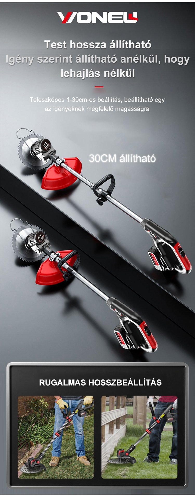 Könnyű lítium akkumulátoros kerti fűnyíró